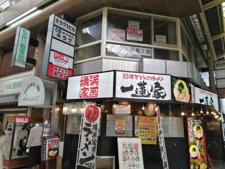 お店の場所は、堺銀座商店街にあるラーメン店『 一蓮家 堺東店』が入るビルの3階です。路地沿いに上階への階段があります。