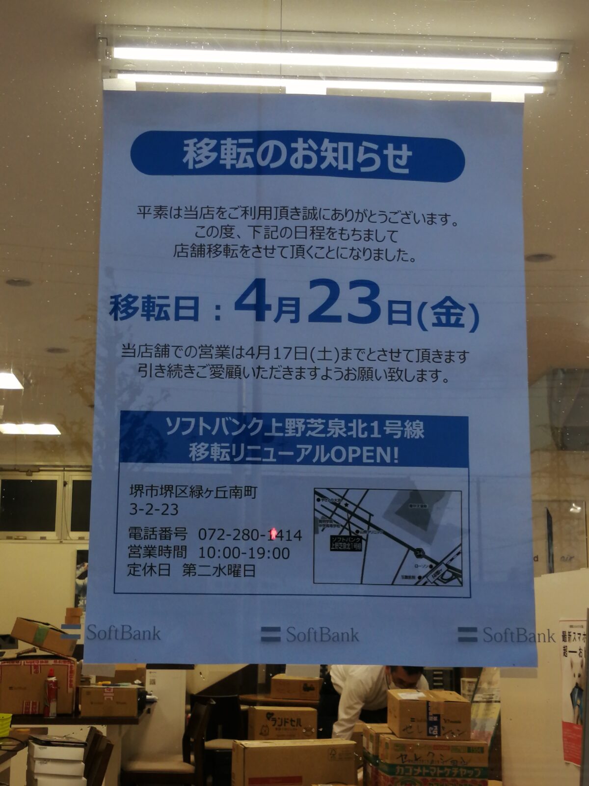 目の前にある『ソフトバンク上野芝泉北1号線』が移転するみたいなんです。