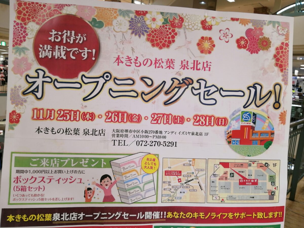 関連記事:【新店情報】堺市中区・小阪のアンディに『本きもの松葉』がオープンするみたいです!: