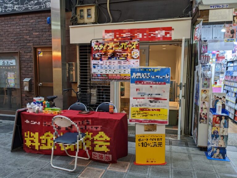 場所は、堺銀座商店街内にある『ジャンボ酒場堺東店』の前にある『ヤマブキレコード』の隣りです。