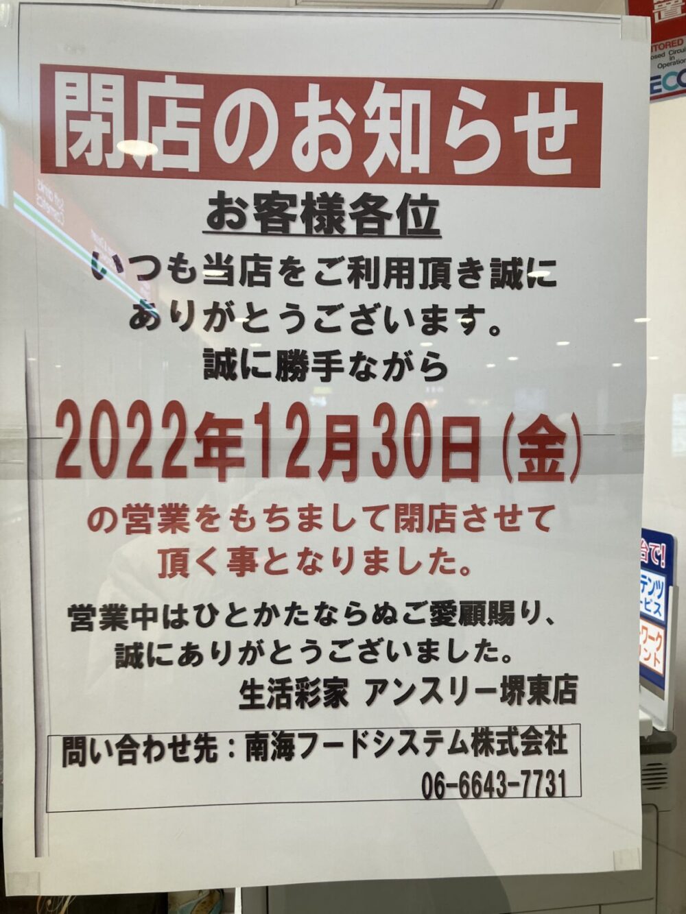 12/30(金)をもちまして閉店するそうです…(T^T)