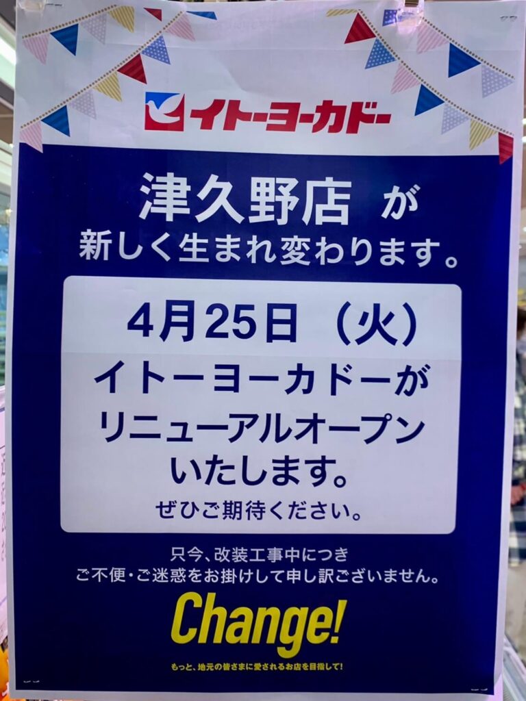 イトーヨーカドー津久野店は4月25日(火)にリニューアルオープン予定!