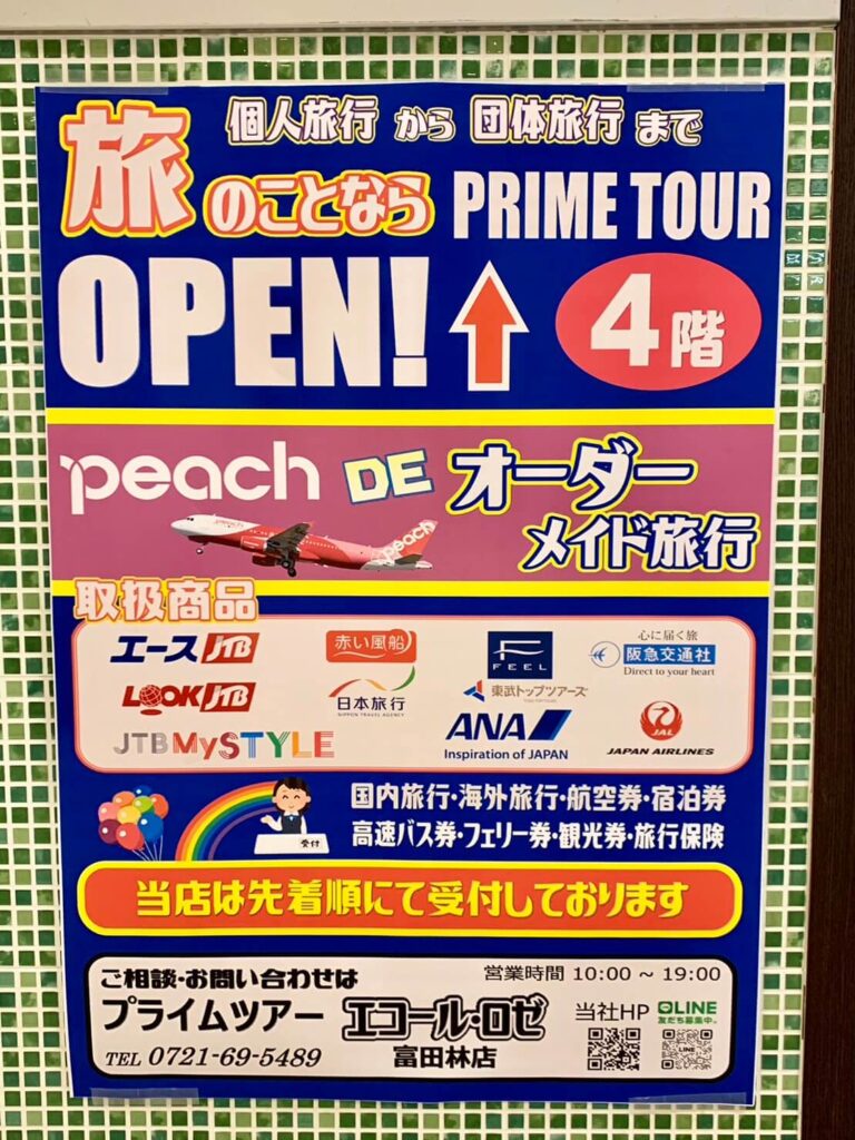 富田林市にあるエコール・ロゼに2023年11月10日(金)、旅行代理店『プライムツアー富田林エコール・ロゼ店』がオープンしました♪