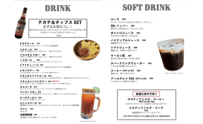 ドリンクメニュー↓