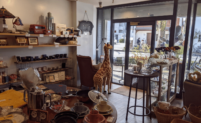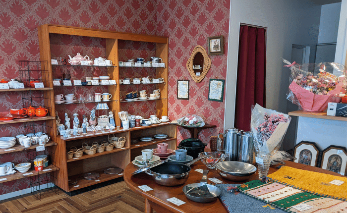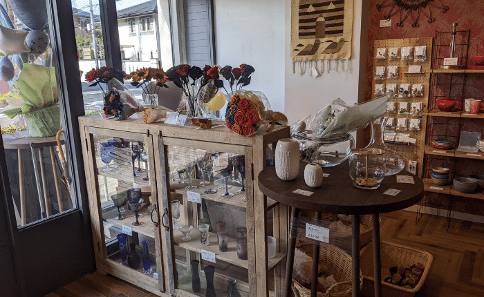 店内はオーナーチョイスのおしゃれな雑貨や、ハンドメイド品などたくさん取り揃えられています。