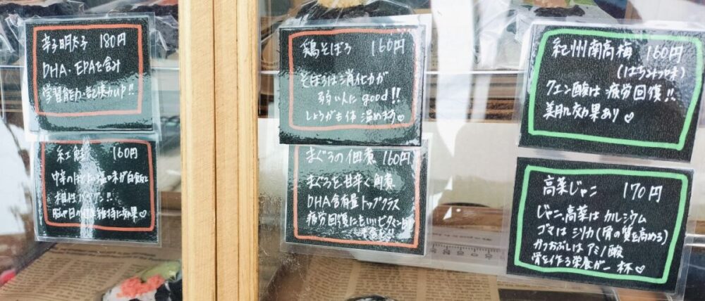 丸くてかわいいおにぎりが常に10~12種類ほどのラインナップがあり、定番の味(梅・紅鮭など)や「辛子明太子クリームチーズ」「エビマヨ」など「その組み合わせは最高だろう・・・!」と思えるハッピーなおにぎりもあり、飽きること無く楽しめそうです(^▽^)♪