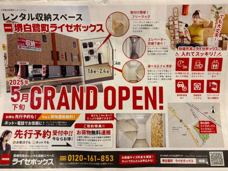堺市東区・白鷺町に設備充実のレンタル収納スペース『REISEBOXライゼボックス』が5月下旬に登場しますよ!