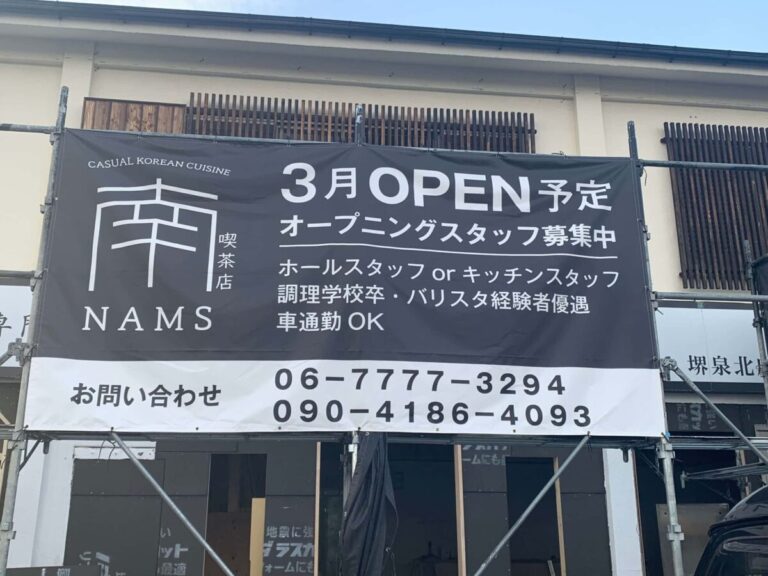 住之江区北加賀屋にある「喫茶店NAMS(cafe NAMS)」の新店舗になるようです。