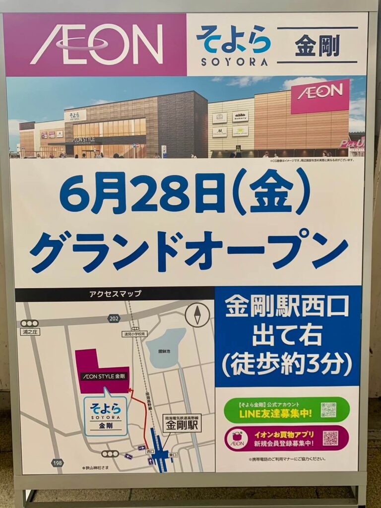 『そよら金剛』は核店舗となる「イオンスタイル金剛」と専門店が15店舗!