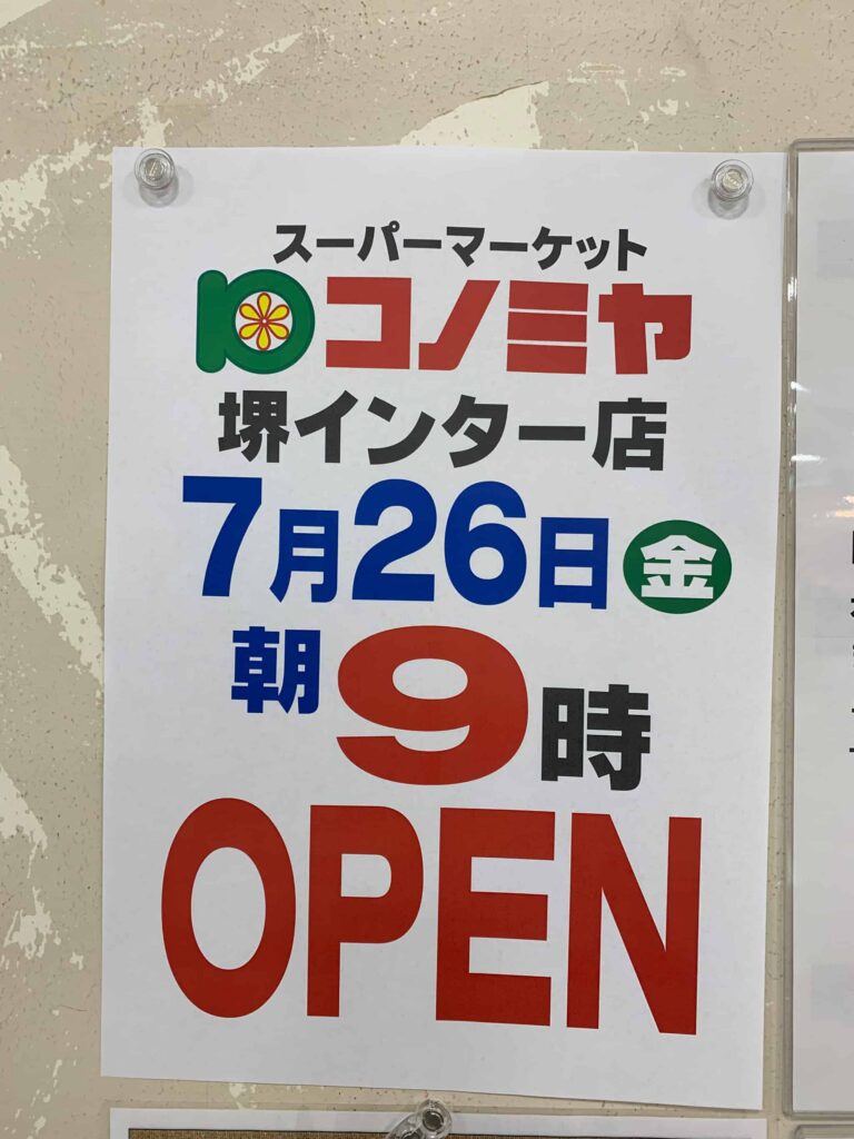 跡地には新たに『コノミヤ堺インター店』が7/26にオープンしますよ!