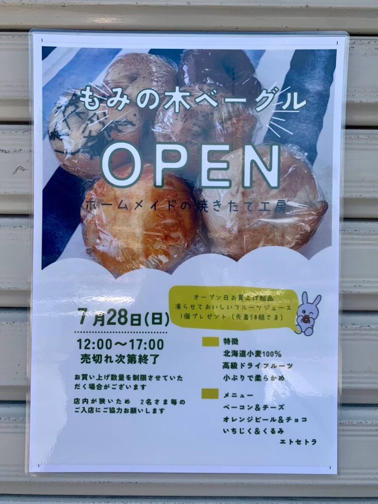なんと『もみの木ベーグル』というベーグルのお店がオープンするようです♪