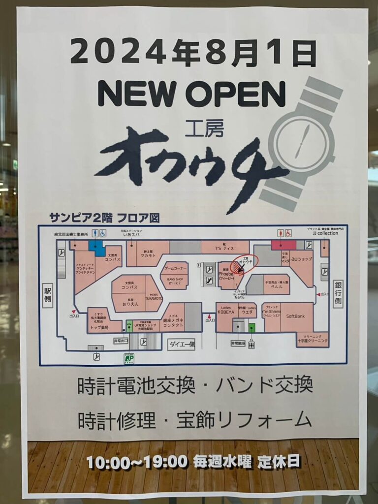 関連記事:【リニューアル】堺市南区・サンプラザ光明池内にある時計修理の『工房オカウチ光明池店』が移転するみたい!!