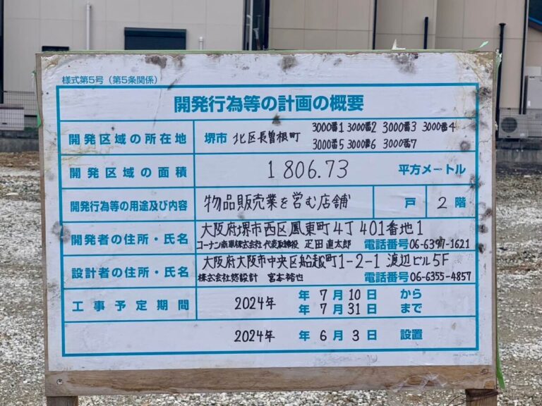 しかも、中規模小売店舗の届出状況を確認すると『(仮称)コーナンプロ 堺長曽根店』とのことでした!