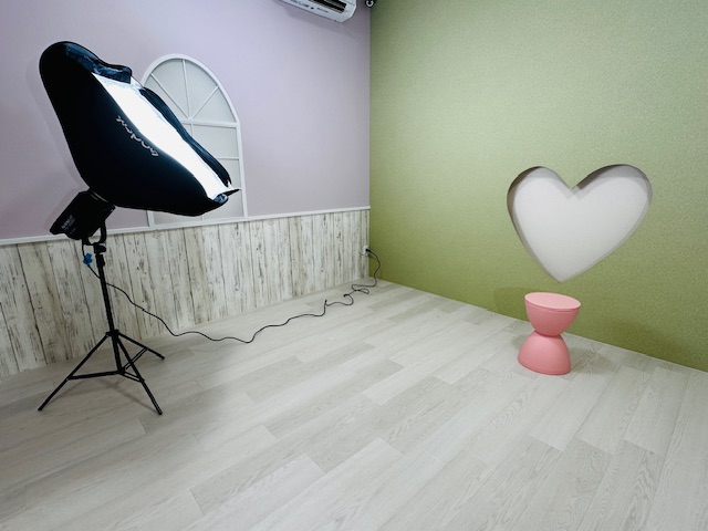 こちらのハートの壁はLEDで様々な色に変化するそうです!スタジオでの撮影をはじめ、出張撮影やレンタルフォトスタジオとしても利用可能です。
