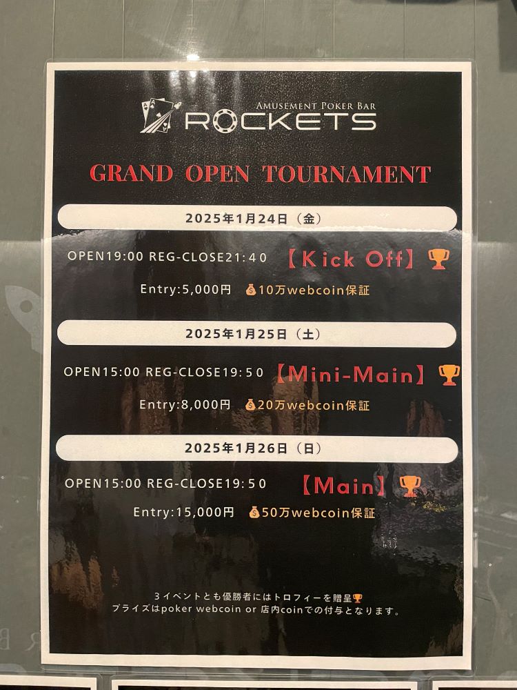 イベント等の詳細は「ROCKETS amusement poker bar」公式インスタグラム・X(エックス)にてご確認ください!