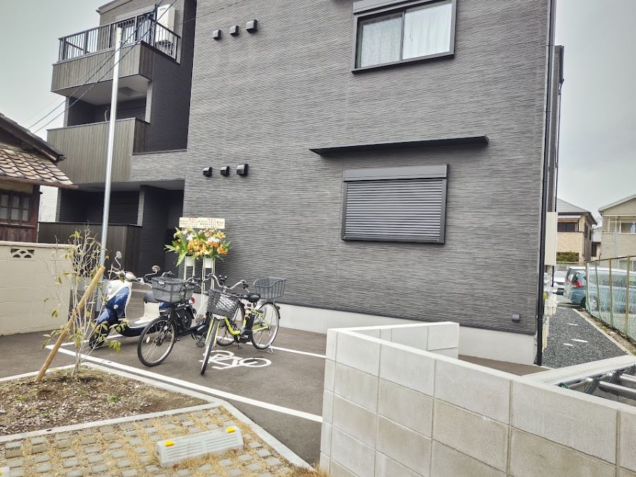 鳳駅西出口の階段を降り、真っすぐ線路沿いに1分歩くと、黒を基調にしたシックな3階建てのハイツが見えてきます!