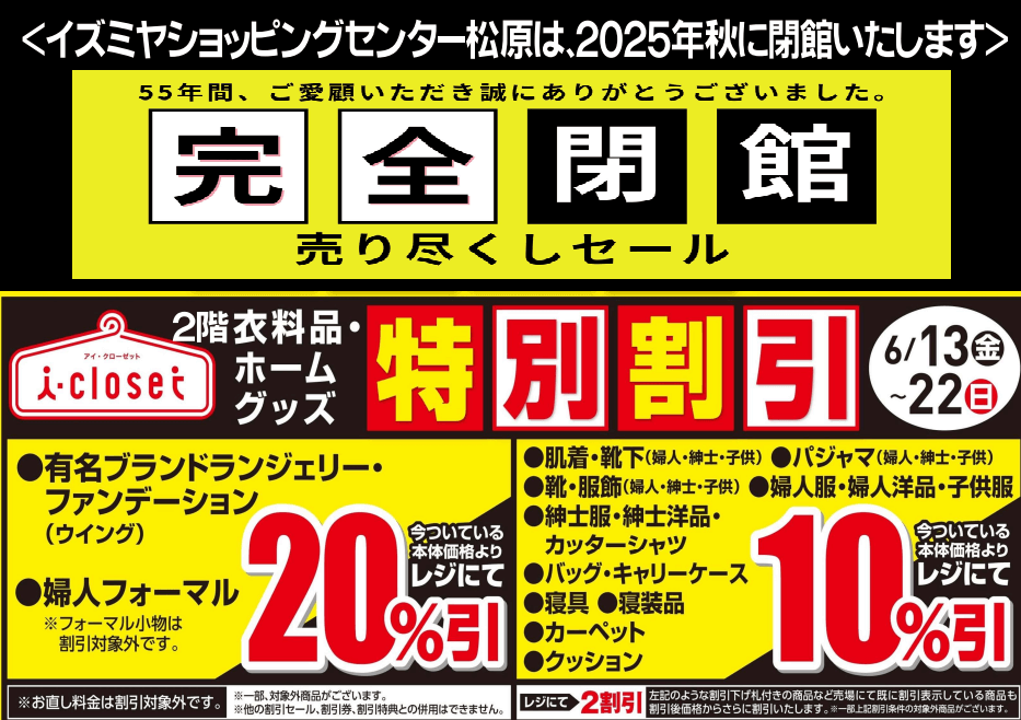 55年のありがとうを込めて。イズミヤ松原が閉館前の売り尽くしセール開催!