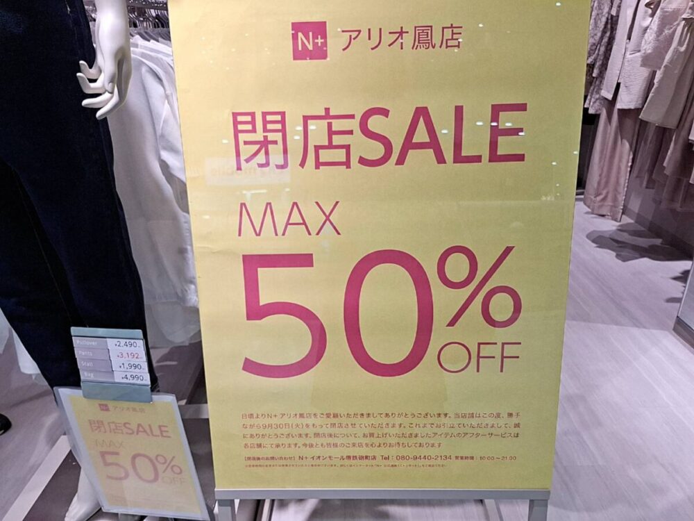 アリオ鳳2階にある「N+ニトリアリオ鳳店」が、9月30日で閉店します…。