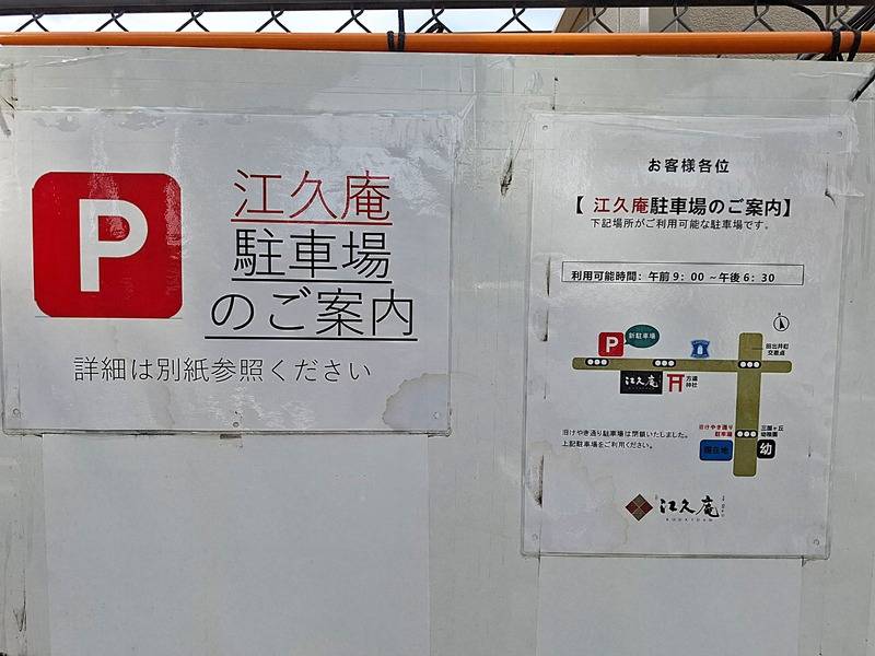 新店舗の工事に伴い、江久庵の駐車場は別の場所へ。