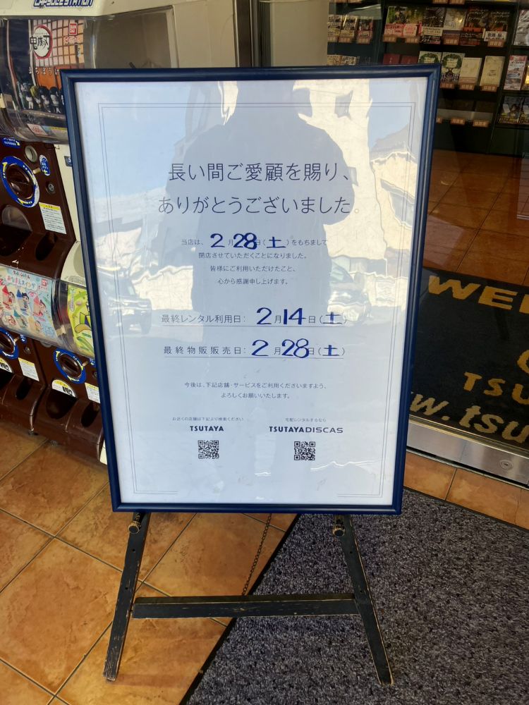 気になる最終営業日は、2026年2月28日(土)とのことですが、閉店に向けて、レンタルと物販で最終日が異なるので注意です!