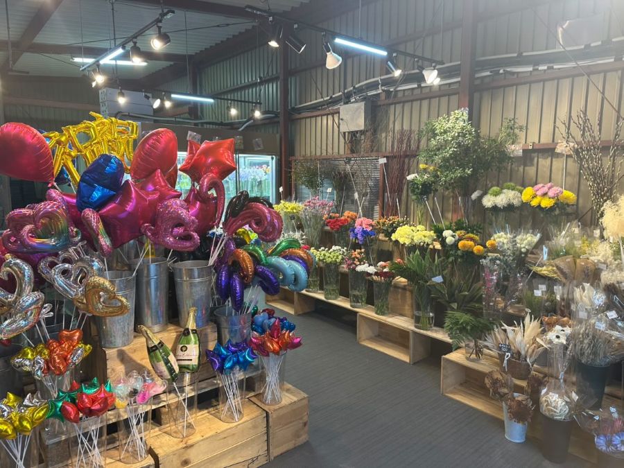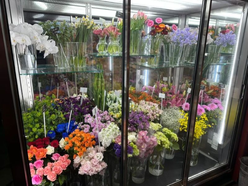 店内には色とりどりの新鮮なお花がずらり。