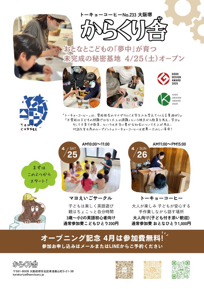 当面は、保護者のリフレッシュと子どもの学びを両立する「子ども英語サークル」や、大人も子どもも安心して交流できる「トーキョーコーヒー」などのプログラムからスタートするそうですよ!