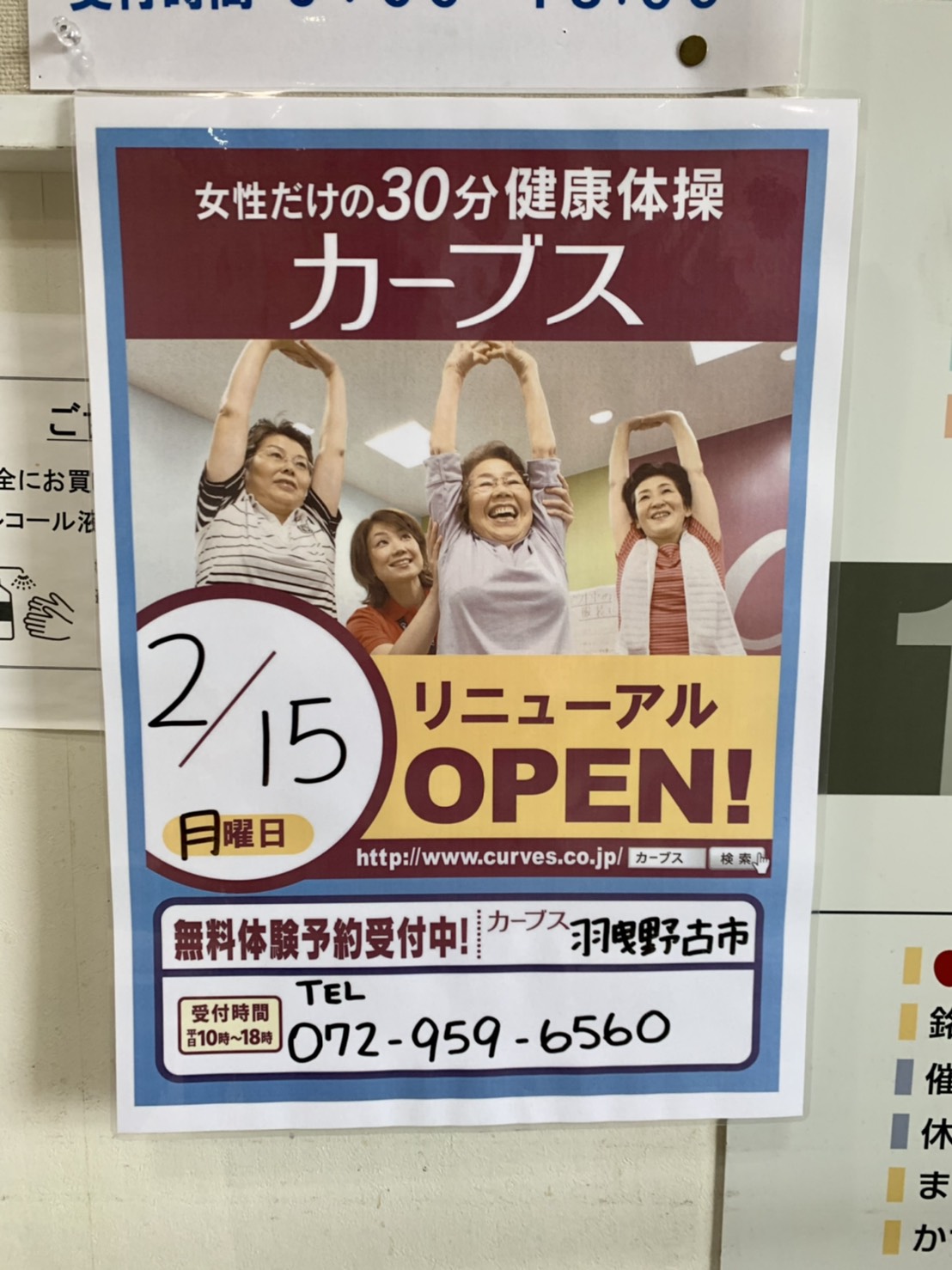 羽曳野市・近鉄プラザ 古市店に2月15日(月)、カーブス 羽曳野古市がリニューアルオープンしました♪