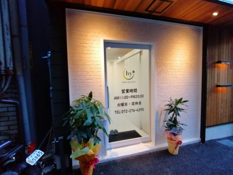 サロンの場所は、堺東駅前にあるラーメン店『天下一品 堺東店』がある通りを西へ進み、『石鍋料理 健』の角を曲がるとすぐの右側にあります。