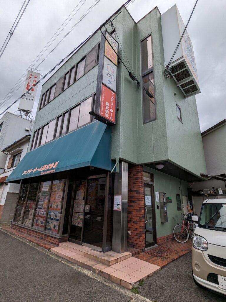 『フェアリーホーム株式会社』が1階に入る緑色の建物の2階です。