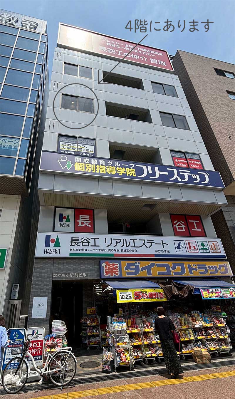 [住所]大阪府堺市北区中百舌鳥町2-104なかもず駅前ビル 4階