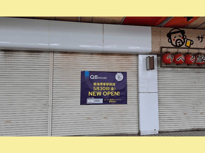 5月30日にオープン予定、ヘアカット専門店「QB HOUSE 南海堺東駅前店」。