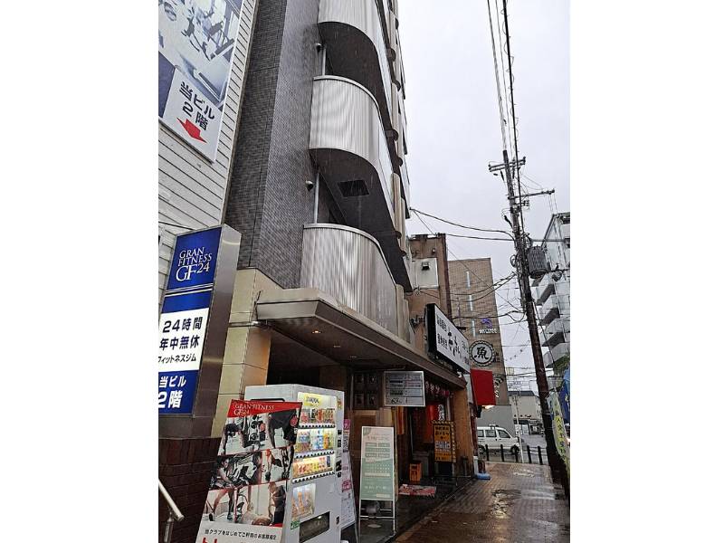 杉本ビル6階に店舗があり、ビル前には案内の看板がでているのわかりやすいです。