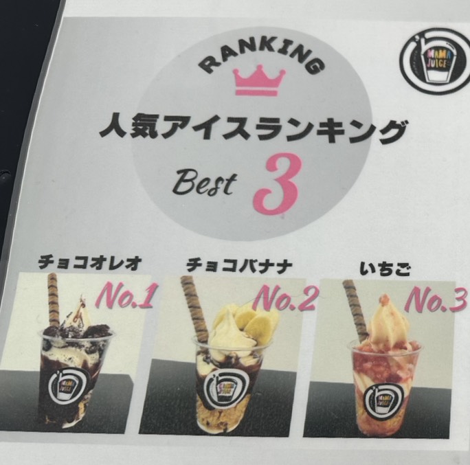 看板メニューのミックスジュースはもちろん、人気No1の「チョコオレオ」、そして王道の「チョコバナナ」など、そそられるメニューが目白押し。