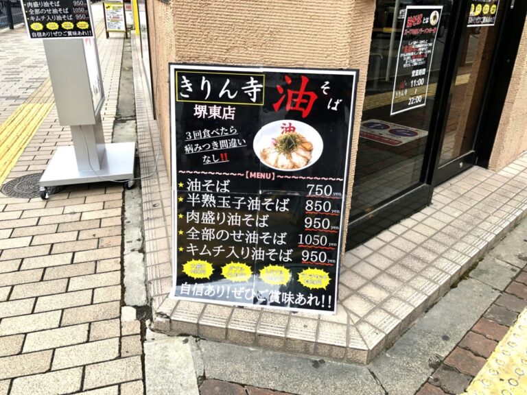 堺区・堺市役所目の前に油そば『きりん寺(きりんじ)堺東店』がオープンしましたよ!!