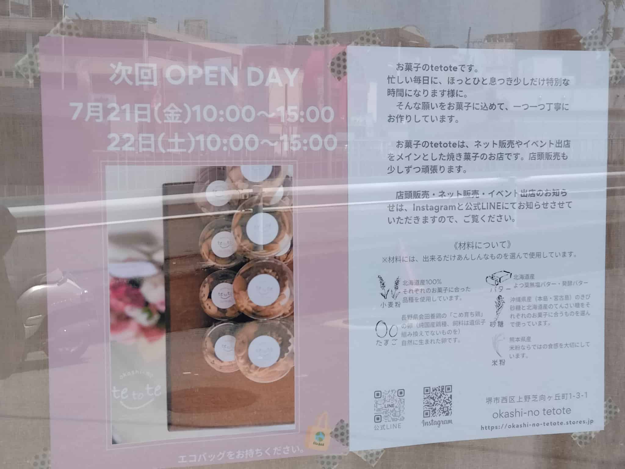 関連記事:【新店情報】堺市西区・上野芝駅近くに焼菓子などのスイーツのお店がオープンするみたいです!: