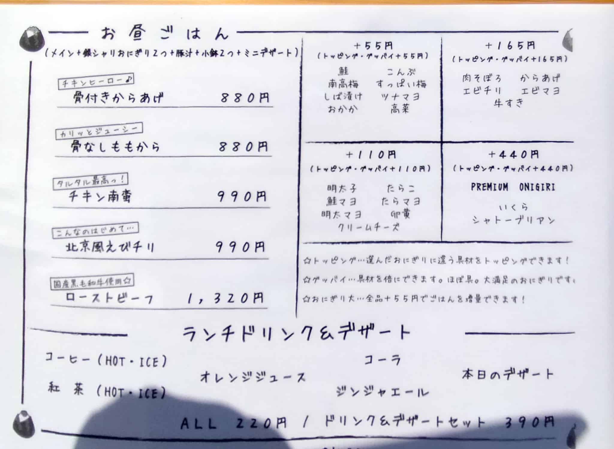 ランチでは好きなおにぎりを選ぶスタイル。
