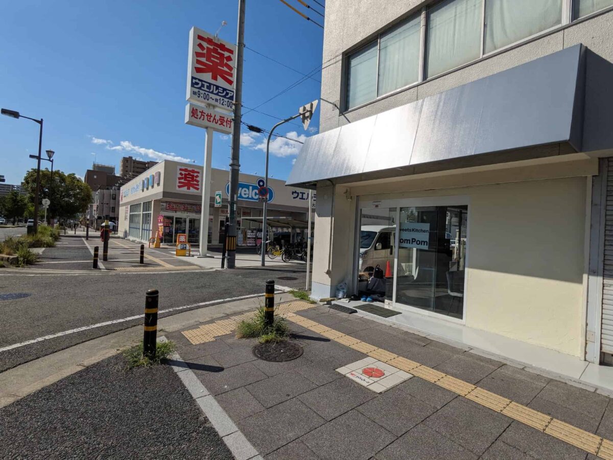 場所は、フェニックス通り沿いにある『ウエルシア堺大町東店』の前です。
