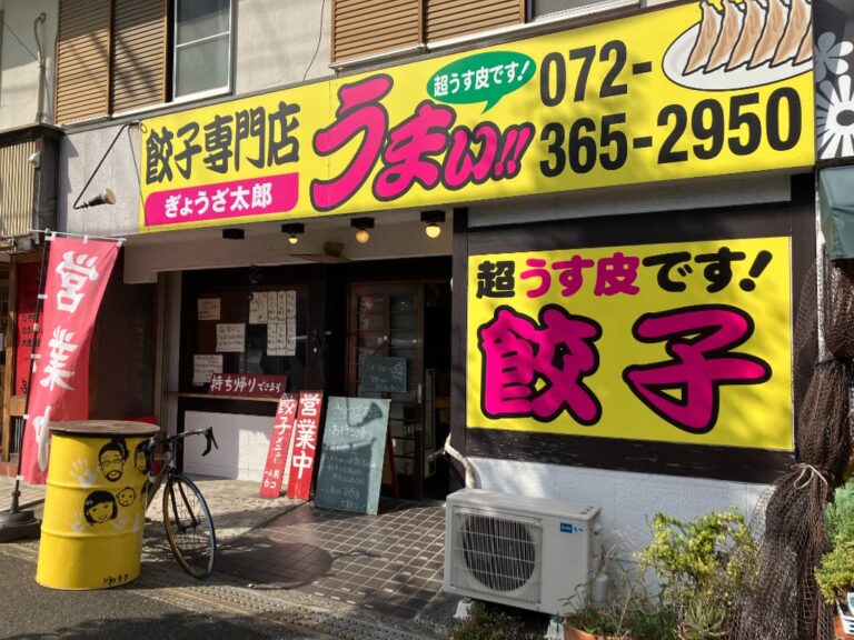 近大病院近くにある、一際目立つ看板の超うす皮餃子専門店「ぎょうざ太郎」が