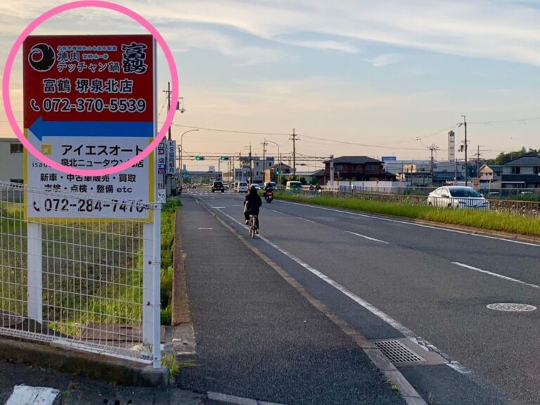 泉北2号線沿いの「ガスト 泉北ニュータウン栂店」駐車場入口にこの看板があります。