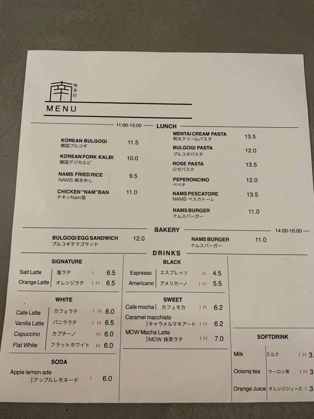 ▽LUNCH/BAKERY/DRINK メニュー▽(※DINNERは別メニューがあります)