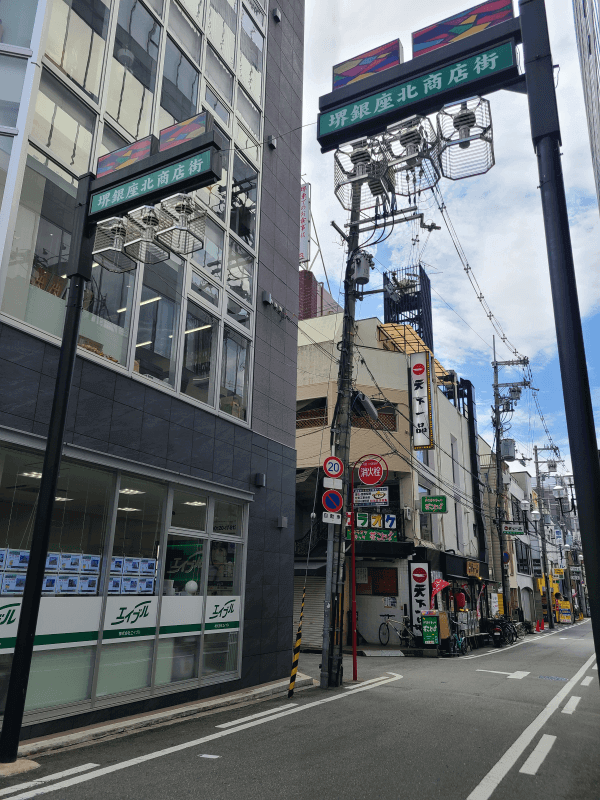 堺銀座商店街の一筋北側、堺銀座北商店街をまっすぐ、左手に見えてきます!