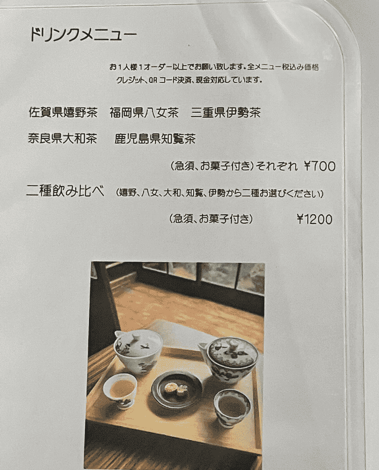 大和茶をはじめ、日本各地から厳選した様々なお茶を取り揃えていて、カフェではこれらのお茶を飲み比べできるメニューも。