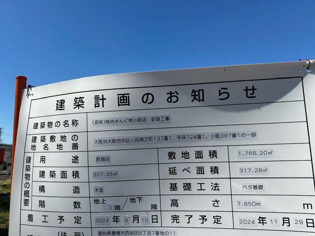 (仮称)焼肉きんぐ 堺小阪店