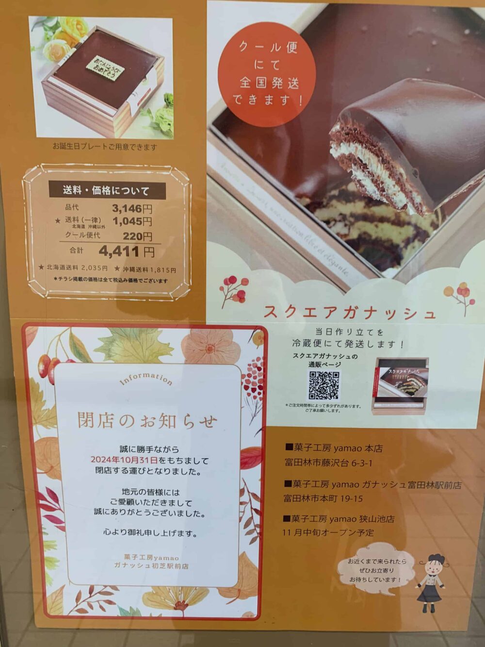 堺市東区・初芝駅にある『菓子工房yamao ガナッシュ初芝駅前店』が10/31(木)に閉店します・・・