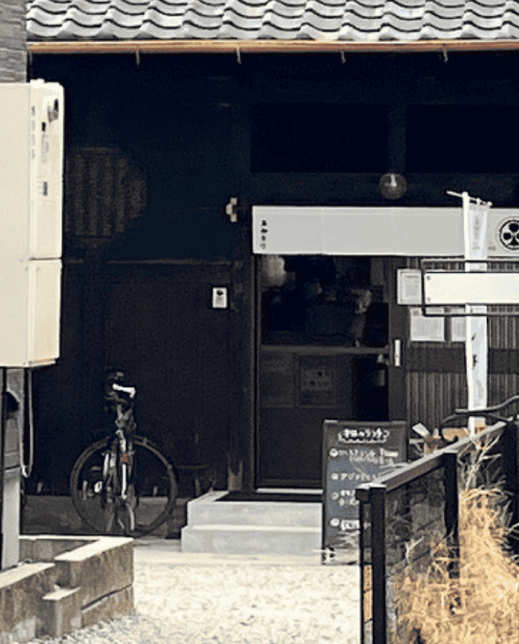 古民家をリノベーションしたどこか懐かしい雰囲気の外観。通りから少し奥まっていて、隠れ家感があります。