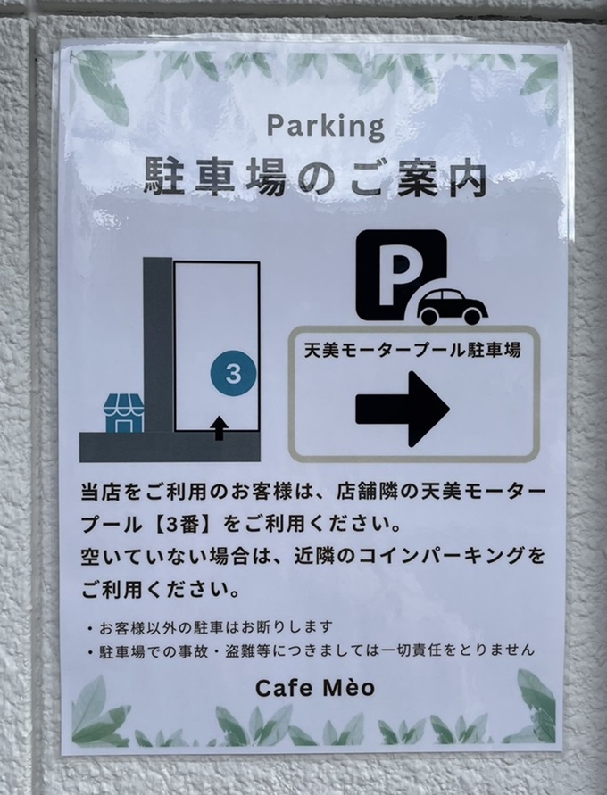 お店のお隣には駐車場もあるのでお車での来店も可能です。