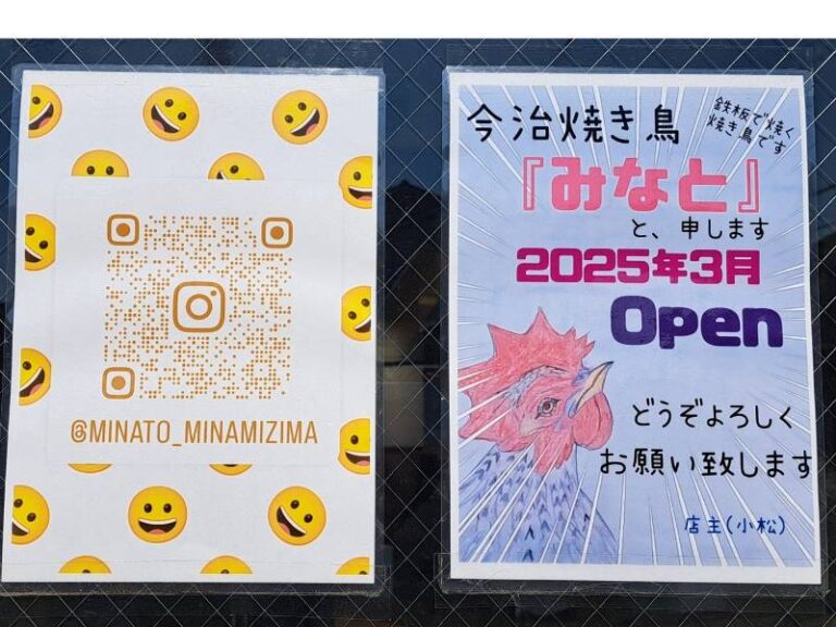 今治焼き鳥みなとの公式Instagramでは、お店について情報がアップされています
