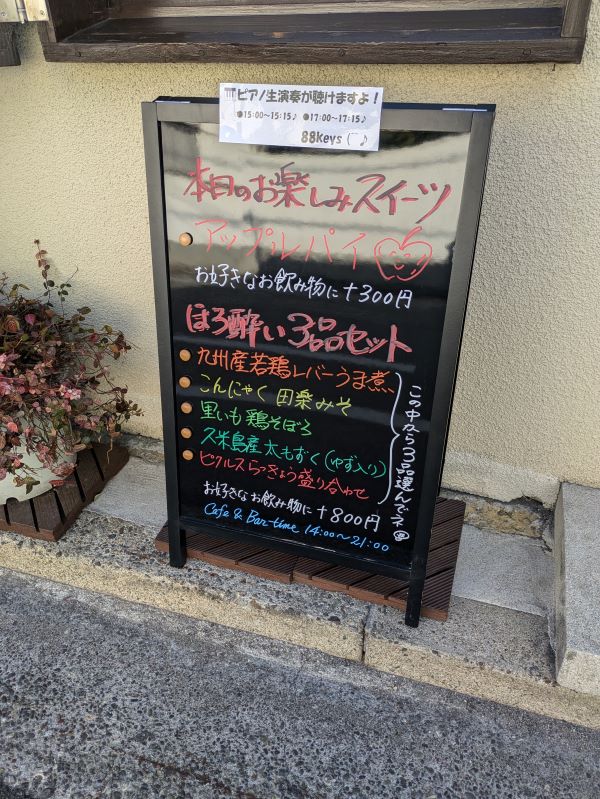 お店の名前である「88keys」とは、ピアノの鍵盤数が88鍵あることから名付けられているとのこと。