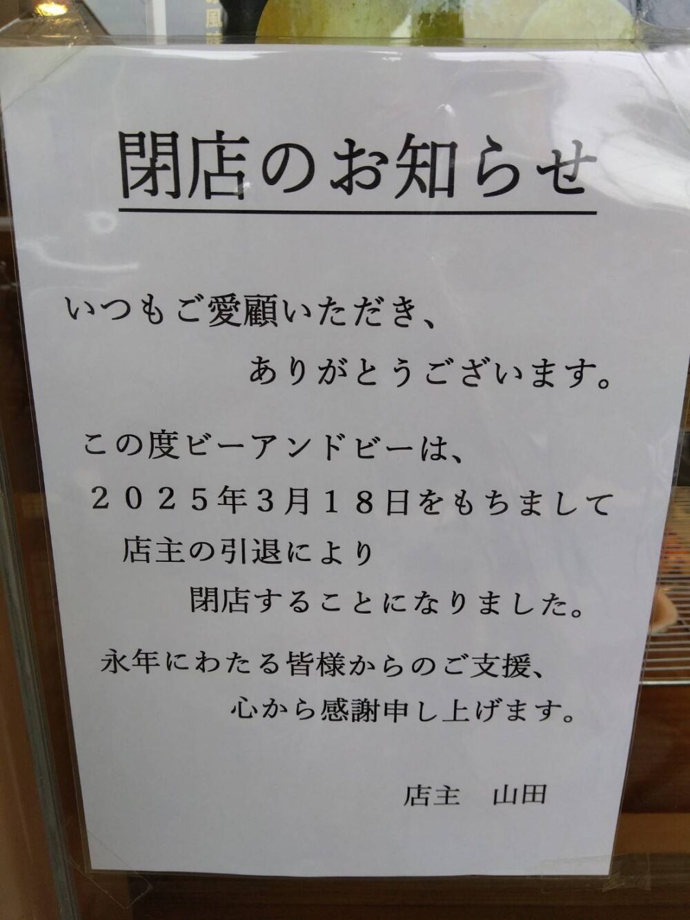 店主さんの引退のためだそうです(悲)