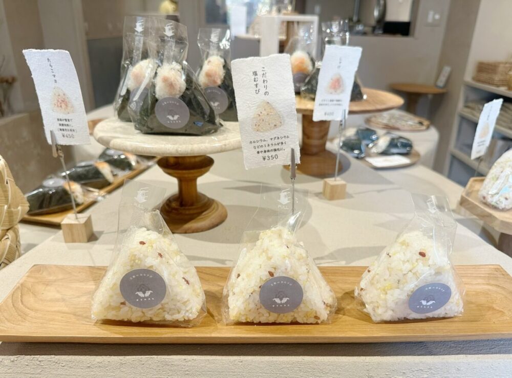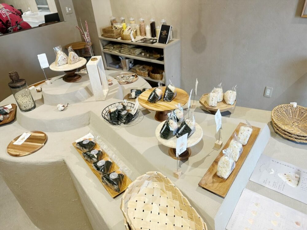 店内はナチュラルで温かみのある空間で、おむすびがまるでアート作品のように美しく並べられ、一つ一つ丁寧に作られていることが伝わりますね。